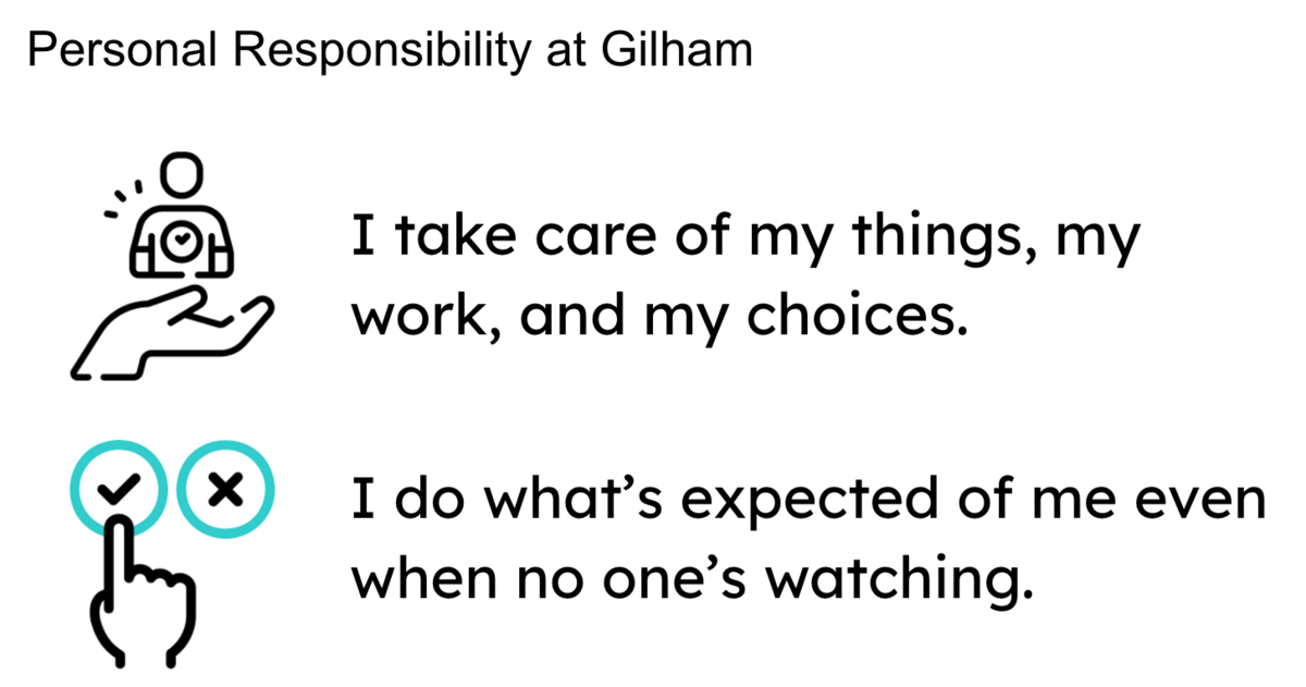Students are talking about: What does it mean to be in charge of yourself? Ask your child about what personal responsibility looks like.