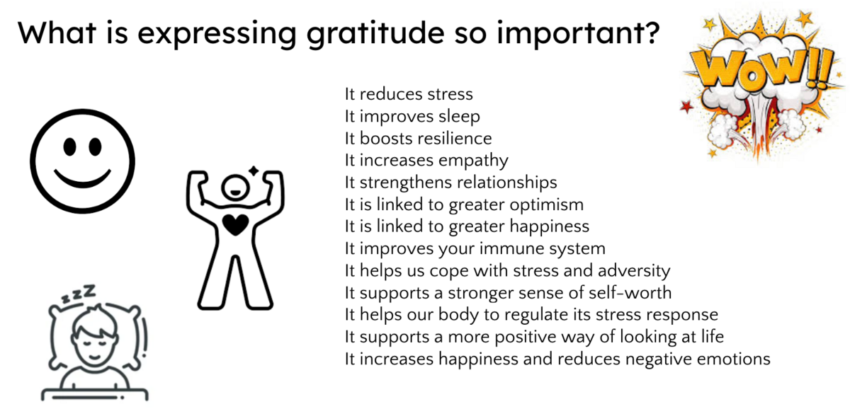 Students are talking about: Gratitude and why it is so important to express gratitude (see the many benefits listed below)!