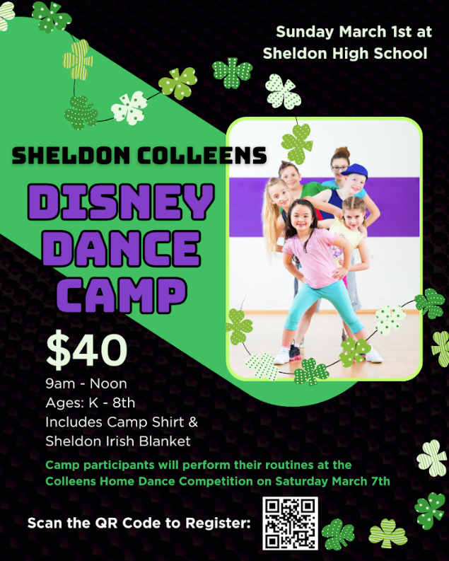 • Sheldon Colleens Disney Dance Camp – The Sheldon Colleens invites K–8 students to the Disney Dance Camp at Sheldon High School on Sunday, March 1, from 9:00 AM–12:00 PM — register here