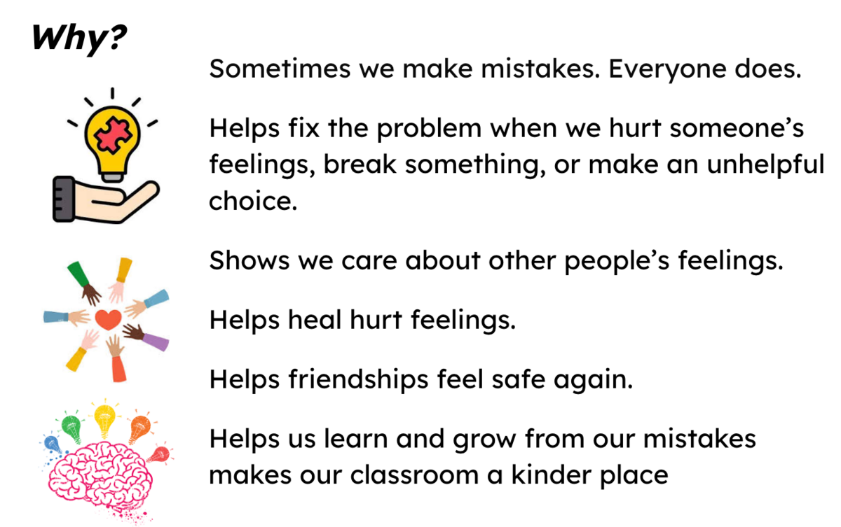 • Aprendizaje social y emocional en todo Gilham: los estudiantes están hablando sobre: ¡la práctica restaurativa de pedir disculpas!